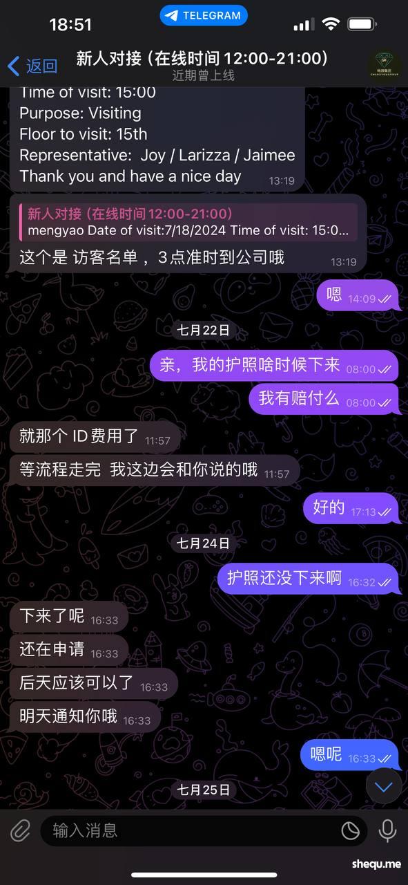 就那个叫TOM胖子老大说什么自己简称总监来着,那时候我在岗位上班他就说过一句只要是离职的护照都会押着故意拖延时间不给员工,拖你十天半个月的,公司是真的他妈的坑,自己上任了还把我们之前的老大开了,各种理由讨好老板想让自己上位
